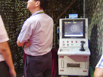 大體而言,展類的種類很單純,就分軍方的和民間的。軍方的大概就搬出一些飛彈發射車(愛國者二型、天弓三型、雄風三型和天弓一型..)、空軍用的飛機和飛彈的模型、新公開的武器(雖然在我看來只有幾樣,而且都是還沒有確定量產的)、一些裝備(通訊、氣象、工程、資訊、連結和單兵裝備)。民間的種類就很雜,而且還不少是我根本連聽都沒聽過都沒聽過、連看都沒看過的(= ="),其中金賓汽車推出的國產裝甲車算是比較特別的內容。另外,外過大比較有名氣的大概就我看到的只有幾家,像是洛克 希德(我去的那天他們的展館沒有開放..只擺一個控制台..)、雷神公司(愛國者系統)、漢翔公司(IDF系列戰機...他們擺了一台透明殼的發動機在旁邊並派人解說運轉原理!)..等,很多。